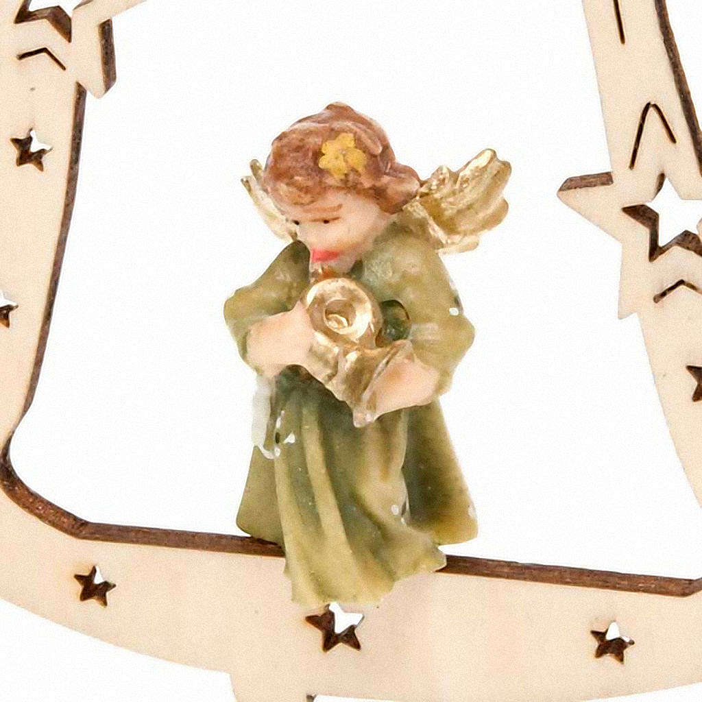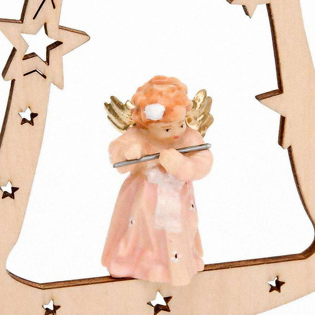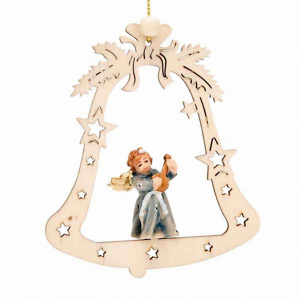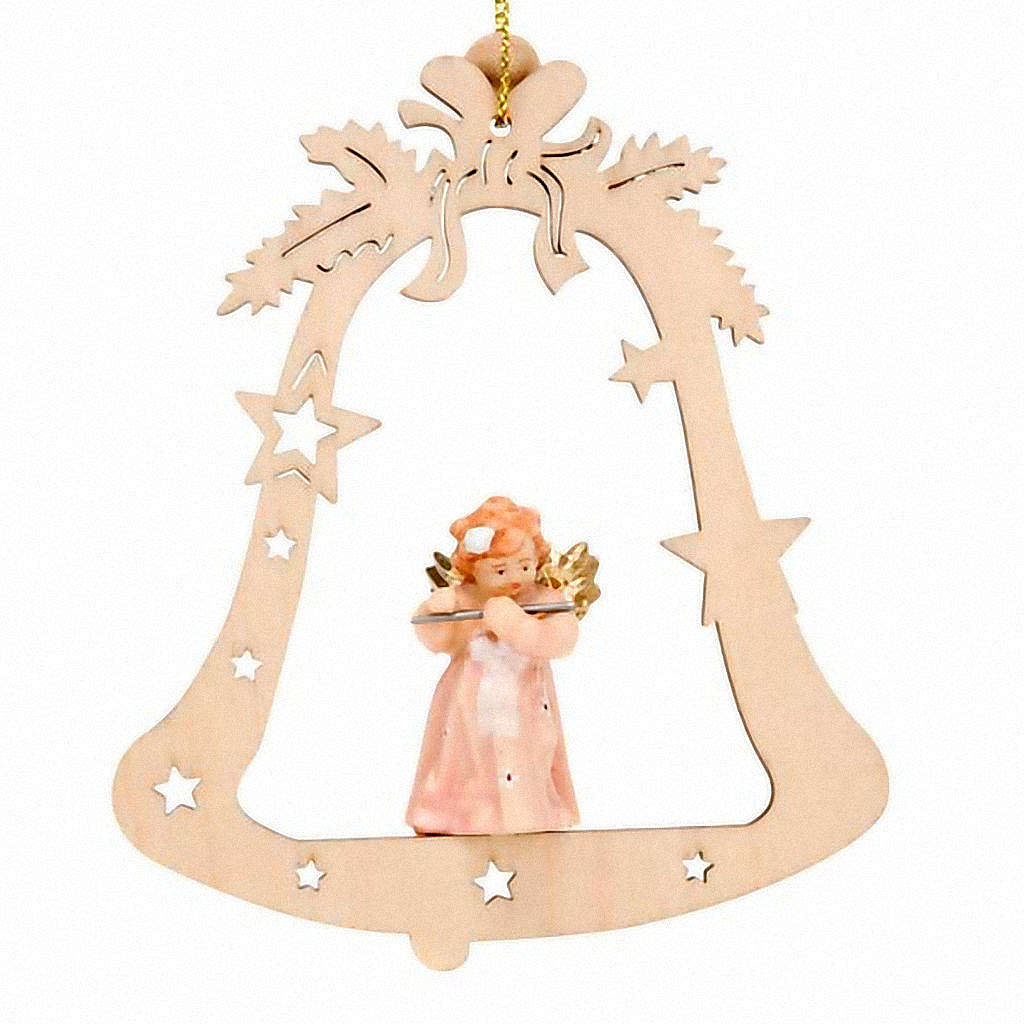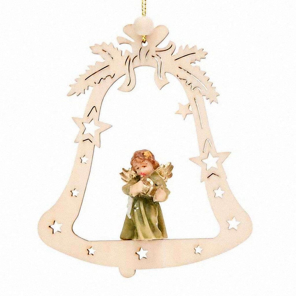 Engel aus Holz fein bearbeitet. Sie sind handgemalt und auf einer geschnitzten Glocke montiert mit Sternen und Mistelzweigen. Es ist eine schoene Dekoration und man kann im Haus oder an dss Weihnachtsbaum haengen. Es kreiert die Weihnachtsstimmung. Das Engel kann mit dem Floete, mit der Lyra oder mit dem Akkordeon sein; man kann unten dem Bild waehlen.