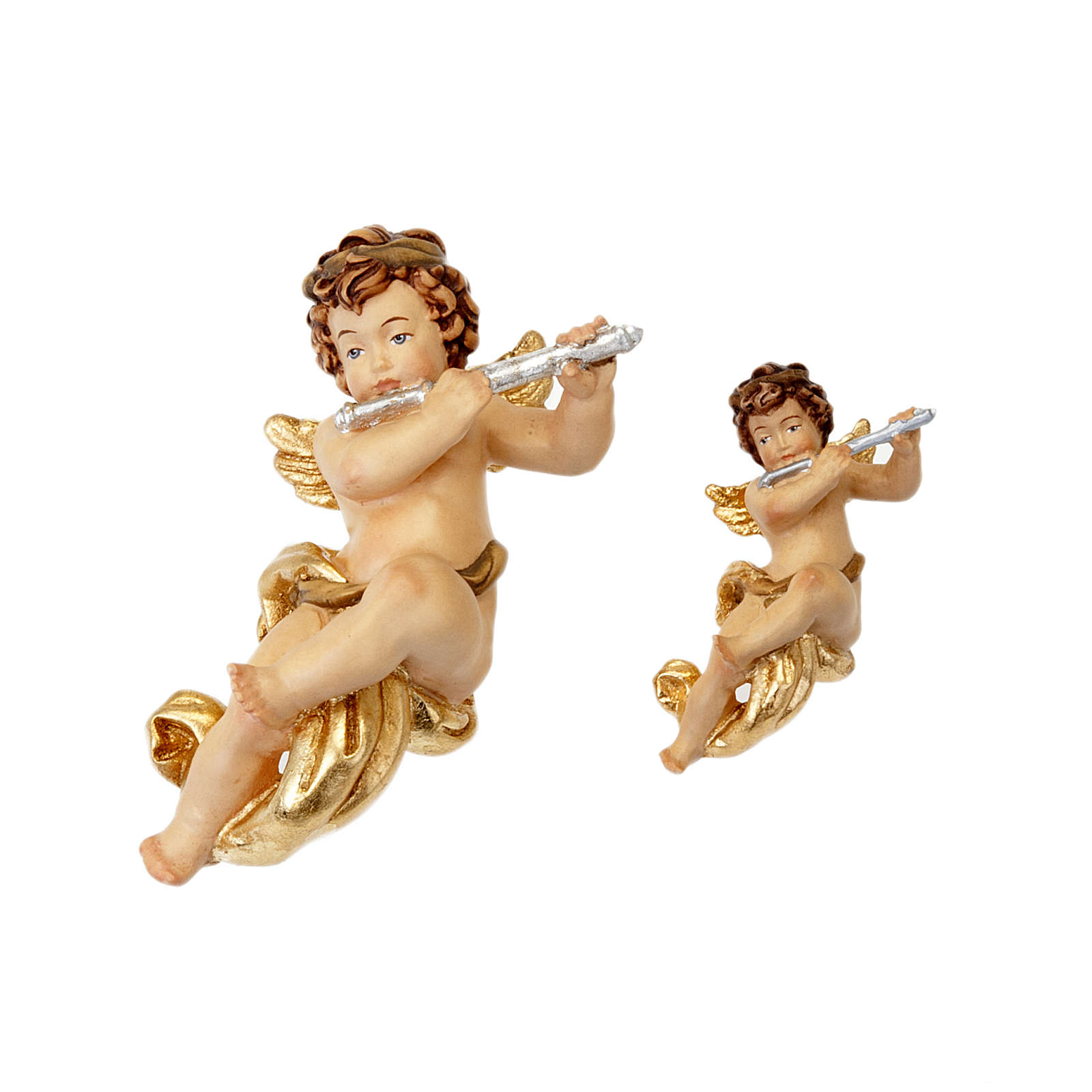 Statue aus Ahorn-Holz, von Handwerken aus Valgardena handgeschnitzt und handgemalt. Sie ist ein mollig Engel dass mit Froh die Querfloete singt. Es kann eine schoene Dekoration fuer das Haus oder fuer die Weihnachtsbaum sein, es ist einfach und passt zu jedem Zimmer und nicht nur zu dem Weihnachtszeit. Die moegliche Grosse sind: 10 oder 16 Zentimeter; man kann die Grosse unten dem Bild waehlen.