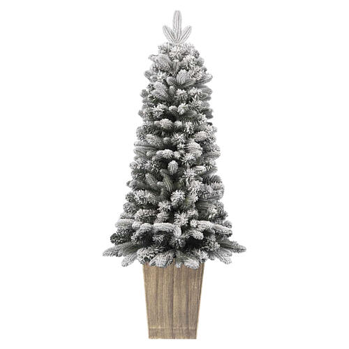 Künstlicher Weihnachtsbaum, Pinetto, mit Schneeeffekt, im eckigen Topf, 120 cm, Poly und PVC