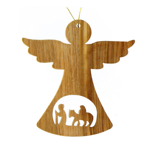 Dieser stilisierte Engelanhänger wird im Heiligen Land aus Olivenholz gefertigt und von lokalen Kunsthandwerkern sorgfältig von Hand ausgearbeitet. Im Zentrum befindet sich eine filigrane Durchbrucharbeit mit den Silhouetten der Heiligen Familie während der Flucht nach Ägypten.