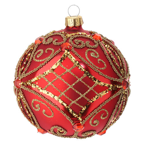 Weihnachtsbaumkugel mit rotem, mattem Grundton, Durchmesser: 100 mm.