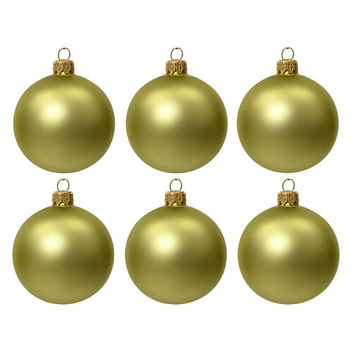 Weihnachtsbaumkugeln, 6-teiliges Set, Farbe: Pistaziengrün, Oberfläche: matt, Durchmesser: 80 mm, Material: geblasenes Glas.