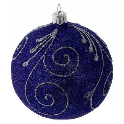 Weihnachtskugel aus Glas mit violetten und silbernen Glitter verziert 100 mm