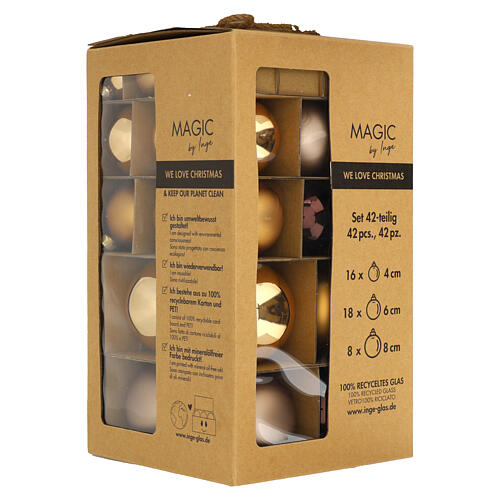 Weihnachtskugeln, 42er-Set, aus Glas, braun-gold-bronze-taupe, Ø 4, 6 und 8 cm