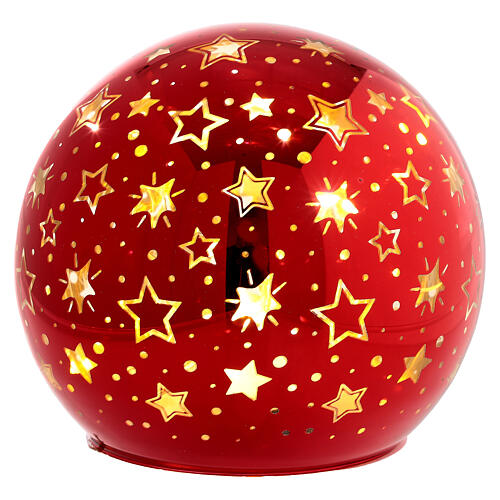 Glaskugel mit LED-Licht, rot, mit stilisierten Sternen – 10 cm