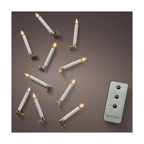 Set mit 10 LED-Kerzen – goldene Clips, warmweißes Licht, Fernbedienung, 14 cm, nur Innenbereich