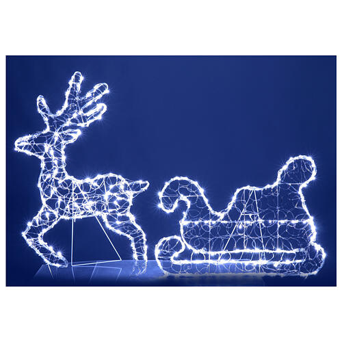 Rentier mit Schlitten 2D, 200 eisweiße LEDs, 136 x 90 cm – für Innen- und Außenbereich