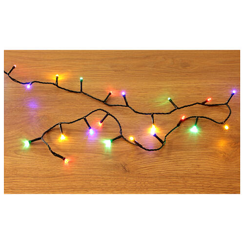 Diese Lichterkette mit 300 bunten LEDs hat eine Gesamtlänge von 15 m. Der Abstand zwischen den LEDs beträgt 5 cm, der Durchmesser jeder LED liegt bei 5 mm.