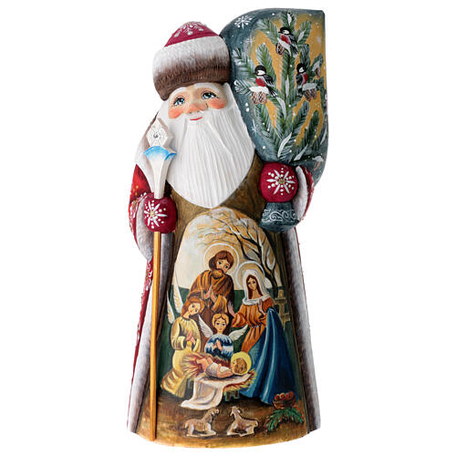 Weihnachtsmann aus Holz mit Darstellung der Geburt Christi, handgeschnitzt, Russland, 25,5 cm
