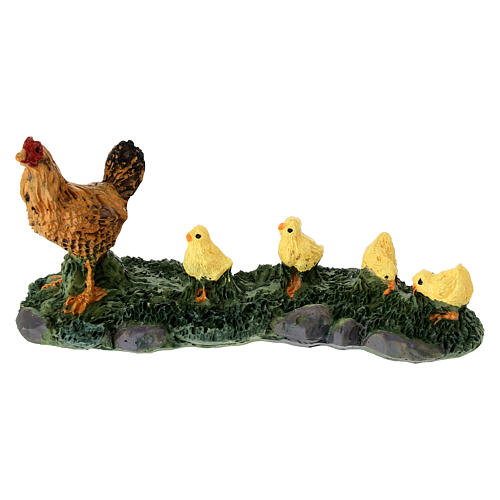 Henne mit Küken, aus Resin, für 8–10 cm Krippe