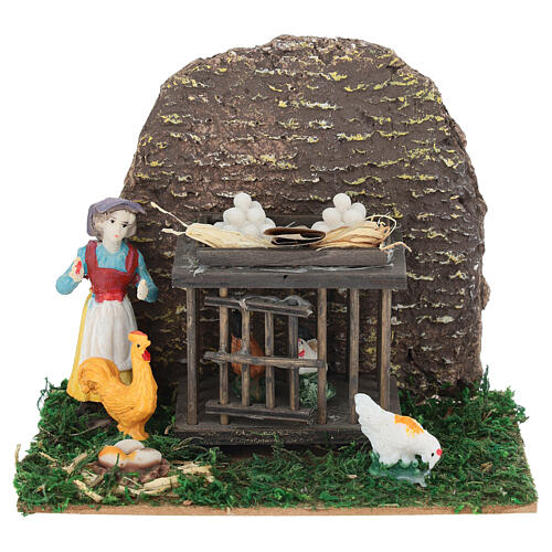 Hühnerstall mit Bäuerin, aus Resin – für 6 cm Krippe