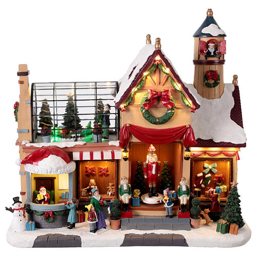 „Weihnachtsladen mit Weihnachtsmann“ – animiert mit Musik und Bewegung, 45 × 25 × 40 cm