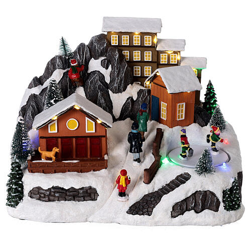 - Weihnachtsdorf mit bunten Lichtern und bewegten Elementen, 20x30x20 cm