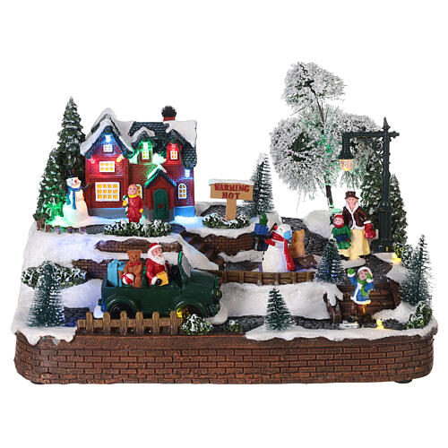 Weihnachtsszene mit Schneemann und LED-Lichtern, 15x30x15 cm